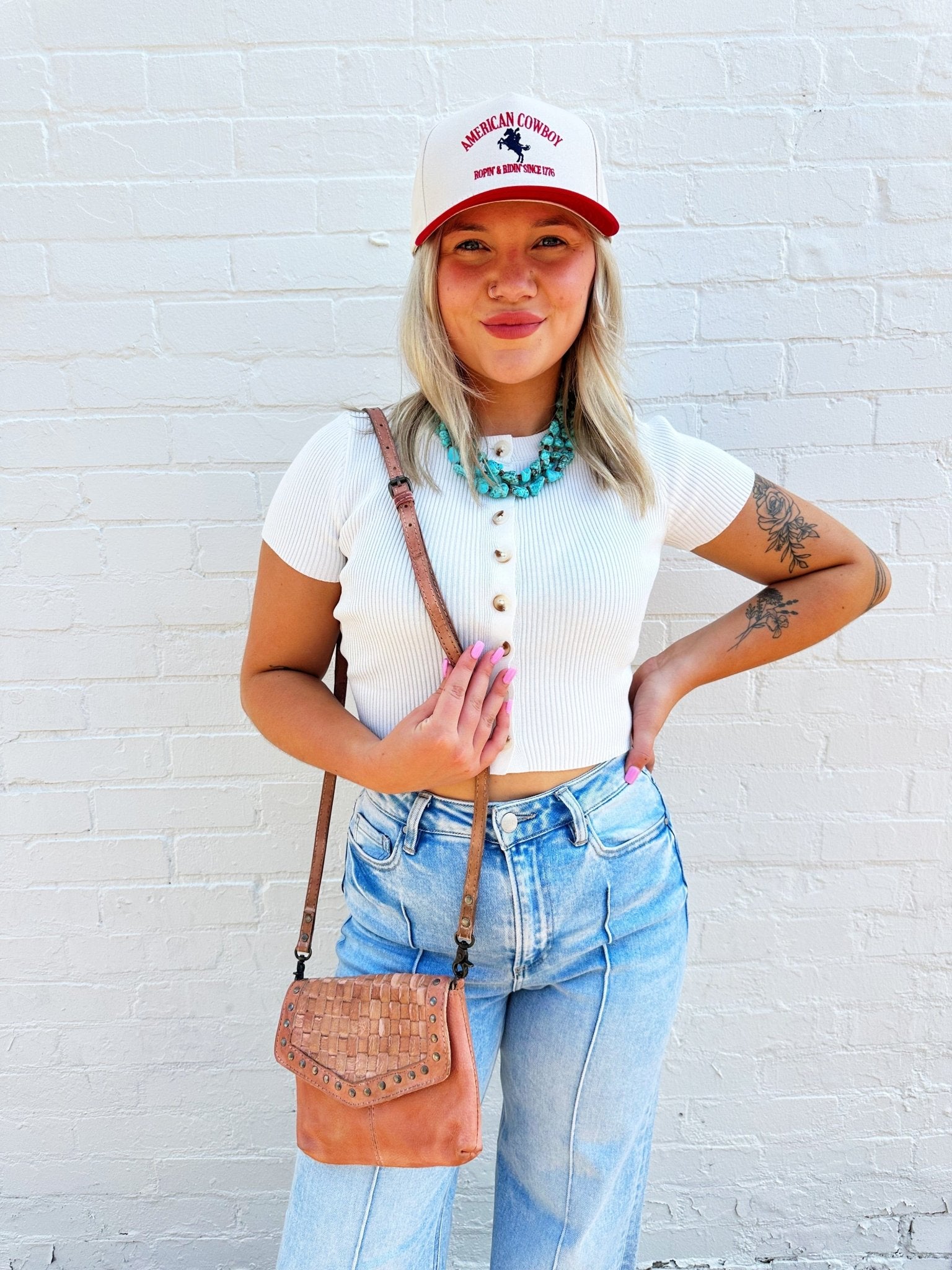 American Darling Crossbody Genuine Leather Woven Bag