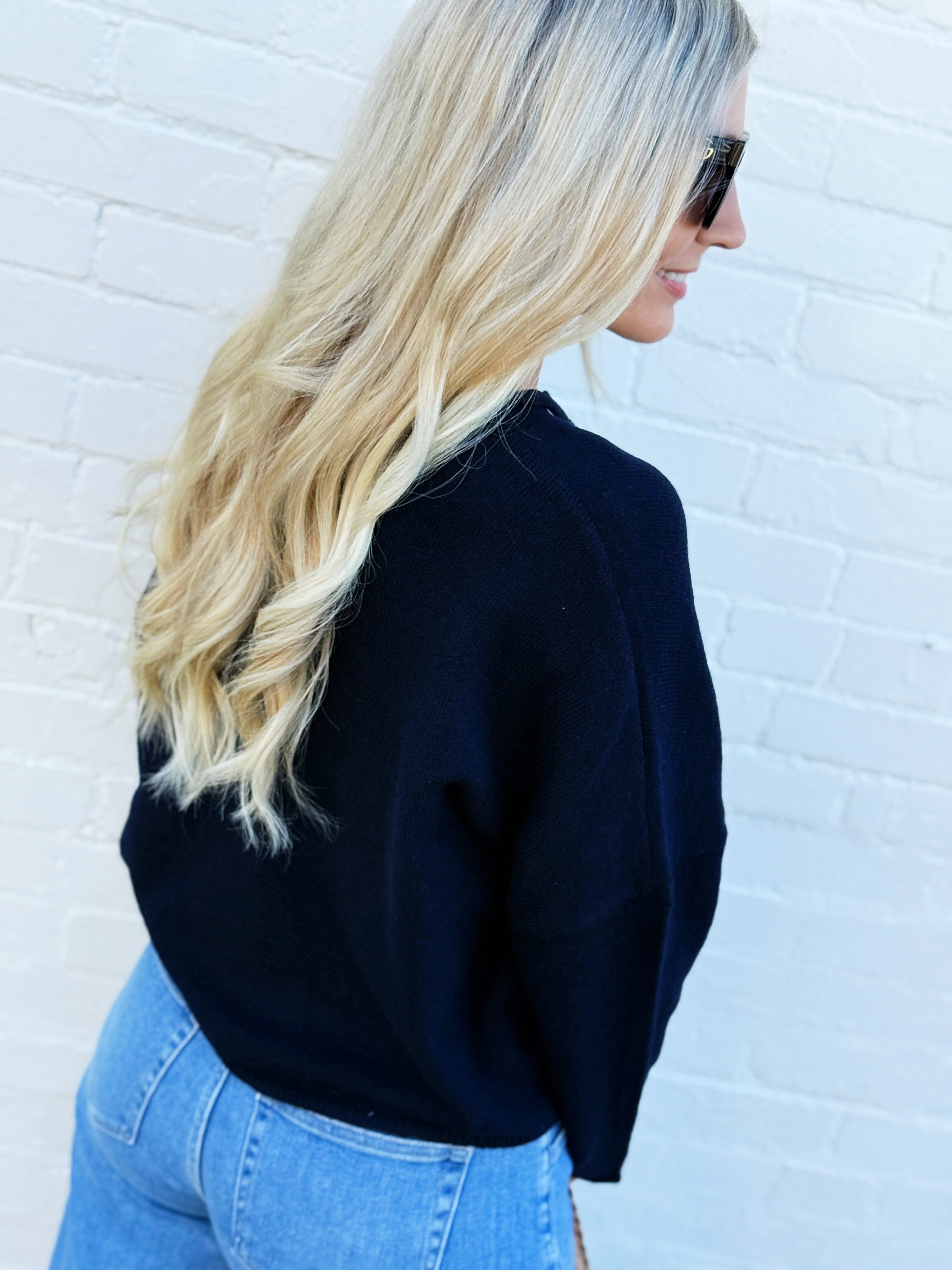 Classic meets cozy in this effortlessly chic navy sweater. Designed with a soft knit texture and a relaxed silhouette, it features a rolled hem along the neckline and wrists. The button detailing that add just the right touch of character. The timeless navy hue makes it endlessly versatile—perfect for pairing with denim, skirts, or tailored trousers. A comfortable thin sweater, essential for your cool-weather wardrobe.