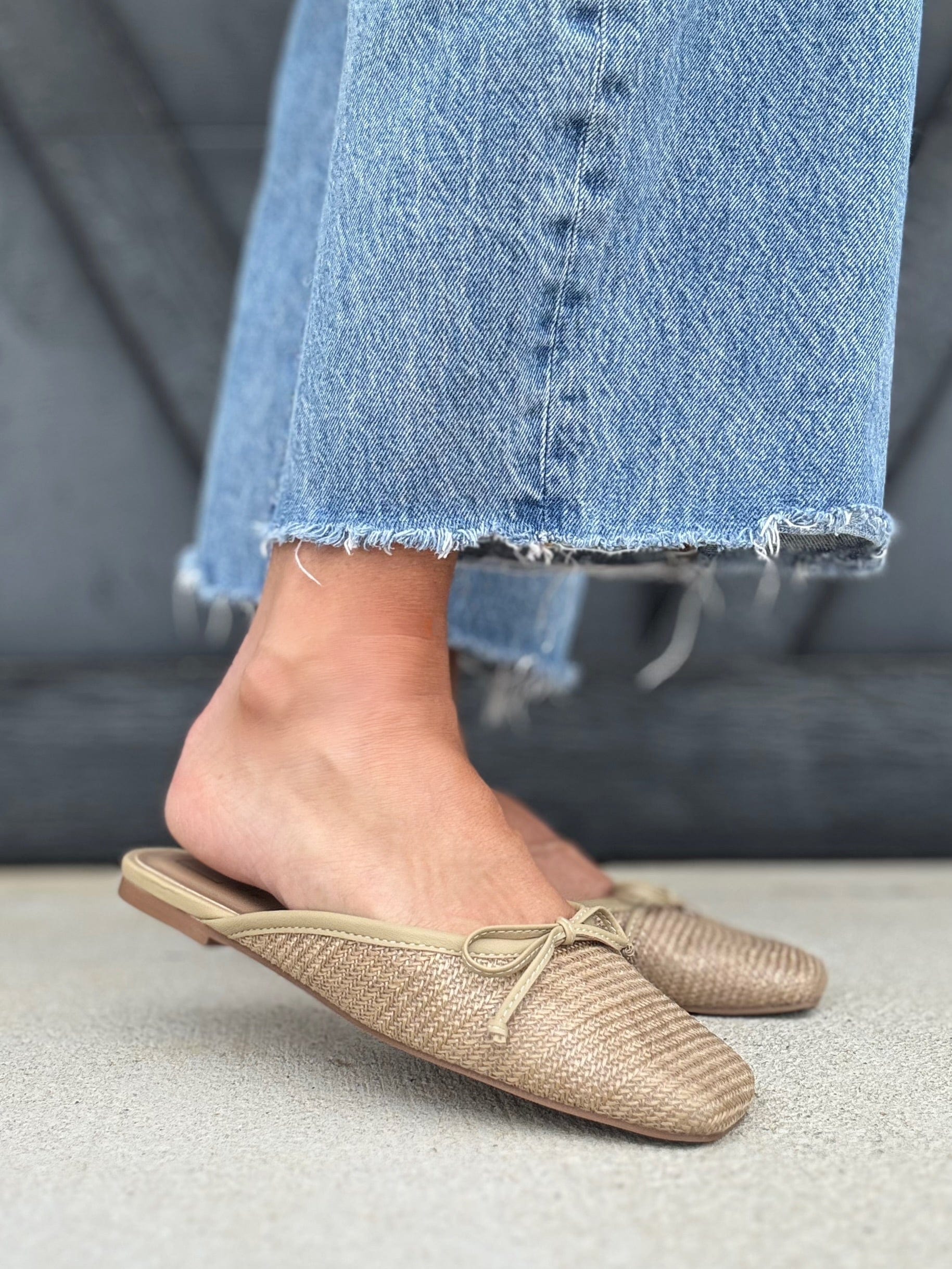 Earthy and effortlessly chic, the ANDREA in Natural Woven brings artisanal craftsmanship to a sleek, modern silhouette. Its woven upper adds texture and depth, while the pointed toe and bow detail keep it feminine and refined. A perfect mix of comfort and style, this flat is made for laid-back sophistication.